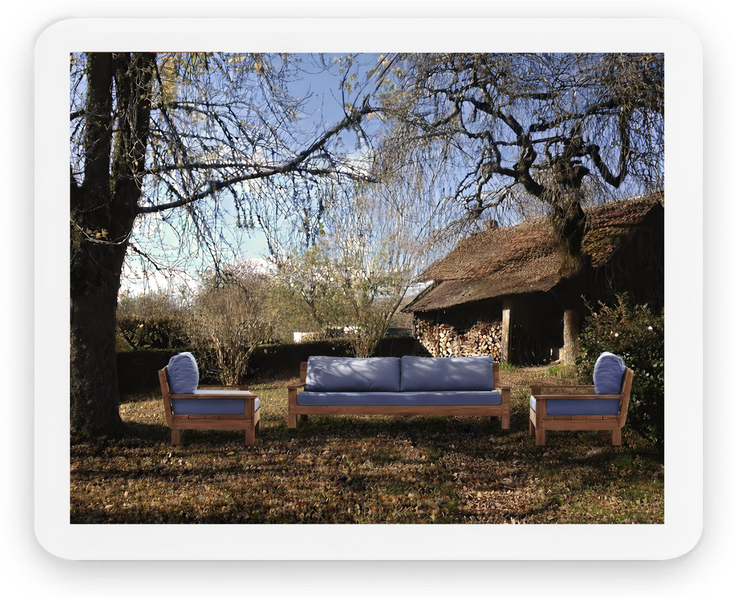En plus de proposer des accessoires et objets pour décorer, jardiner ou bien vivre dehors, Ladivinejardine a crée une gamme de meubles en bois, canapés, banquettes, consoles, tables et bacs à plantes fabriqués localement et par des jeunes artisans en apprentissage.