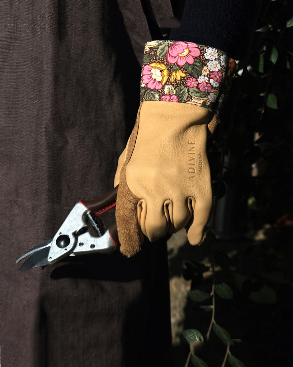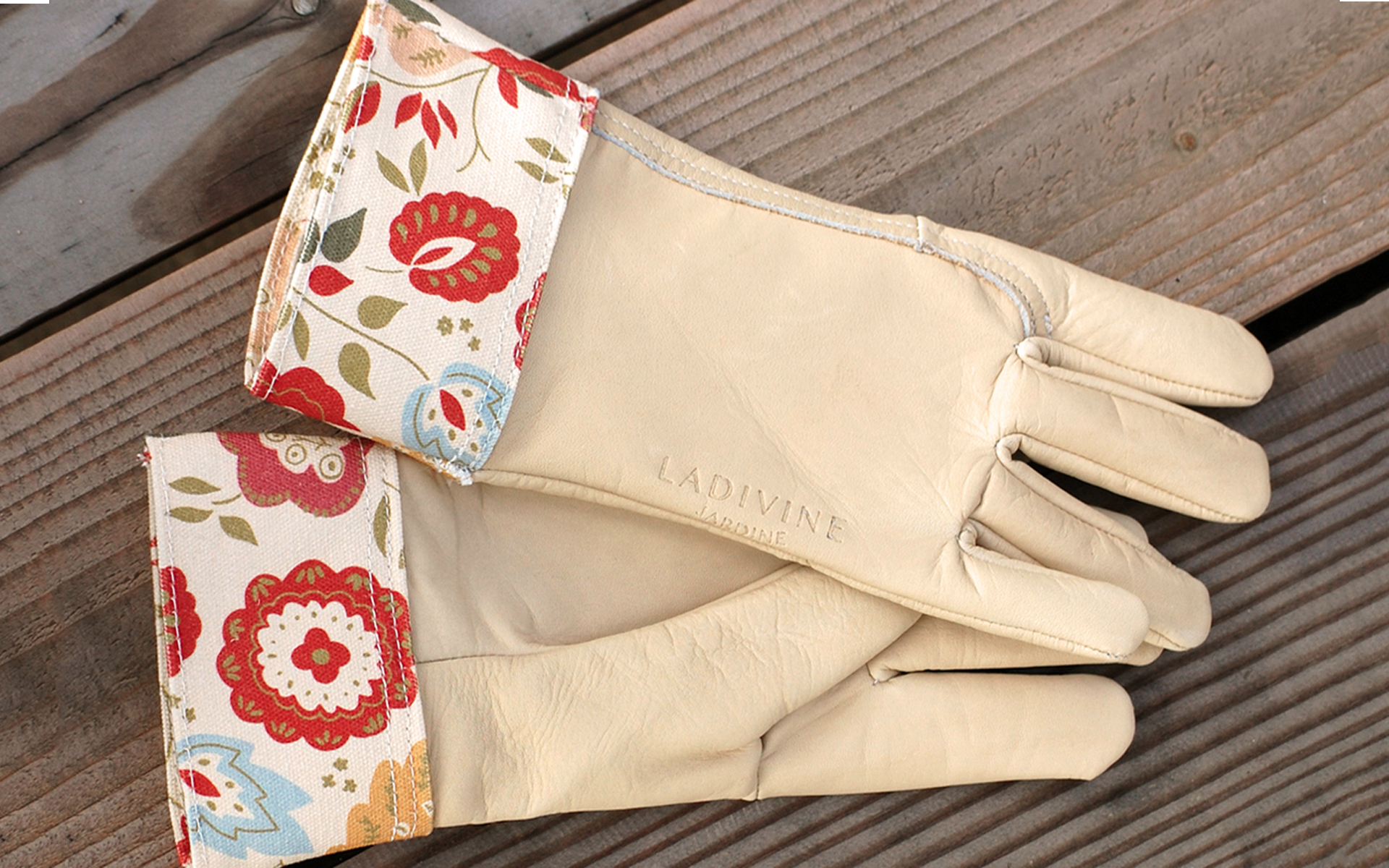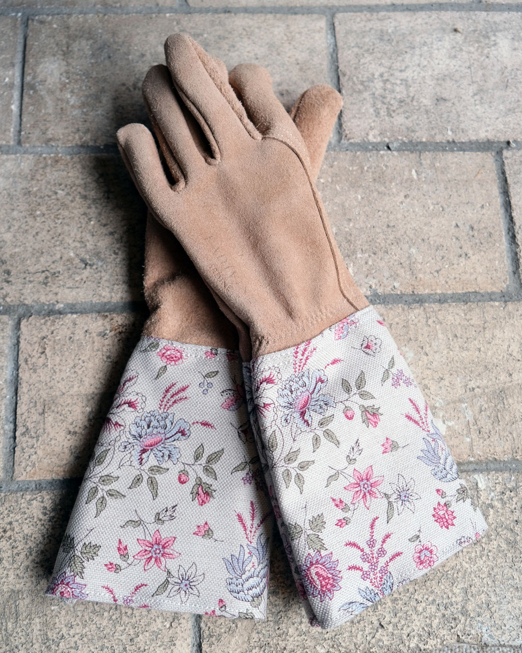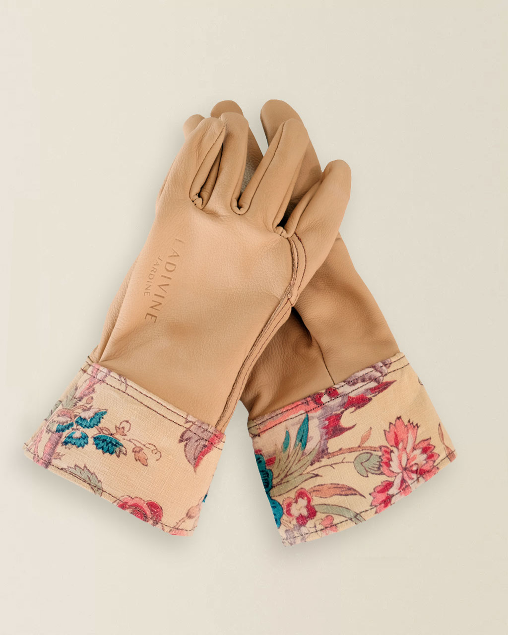 GANTS DE JARDINAGE EN CUIR ET TOILE IMPRIMÉE