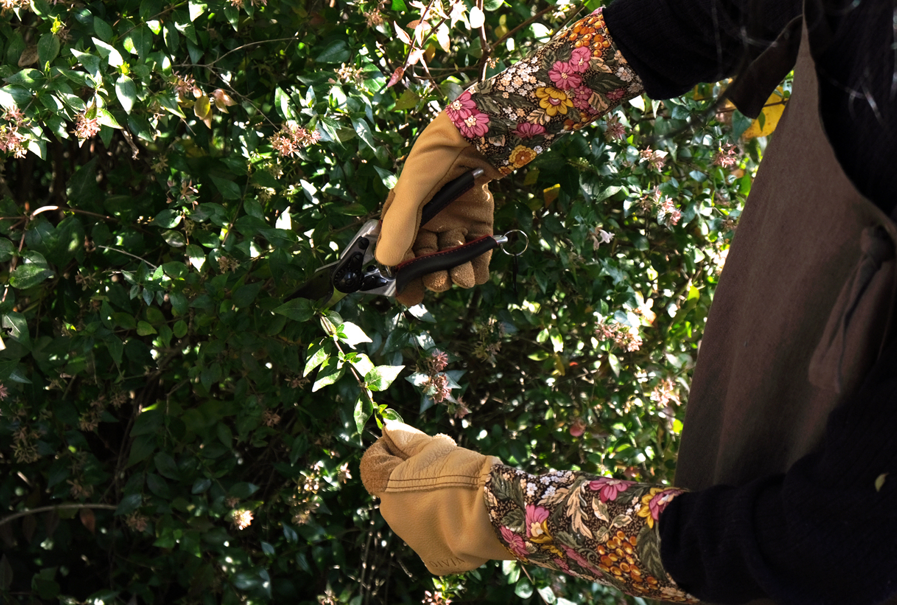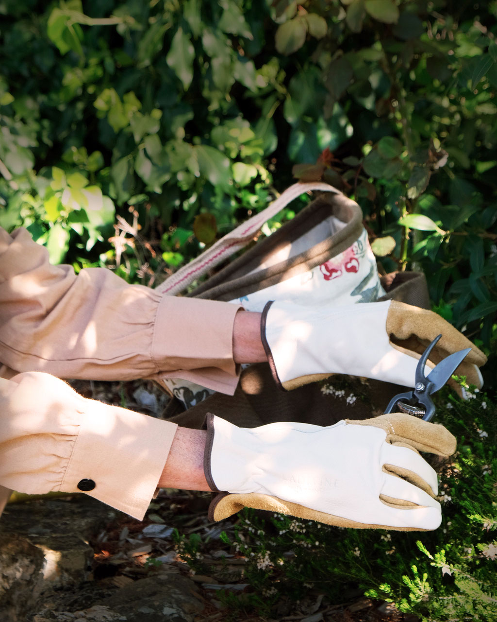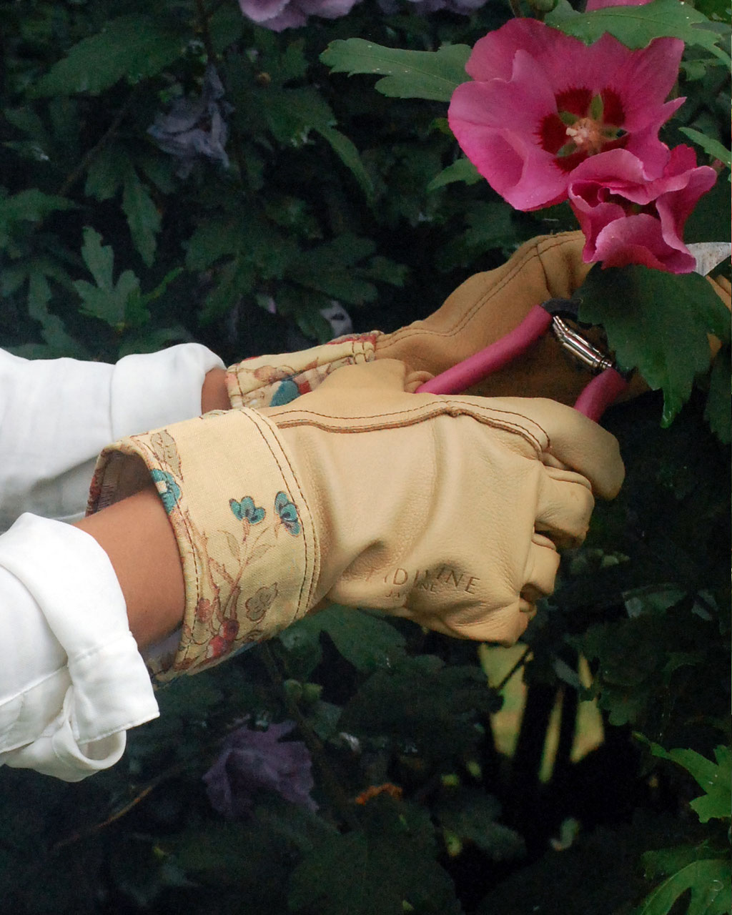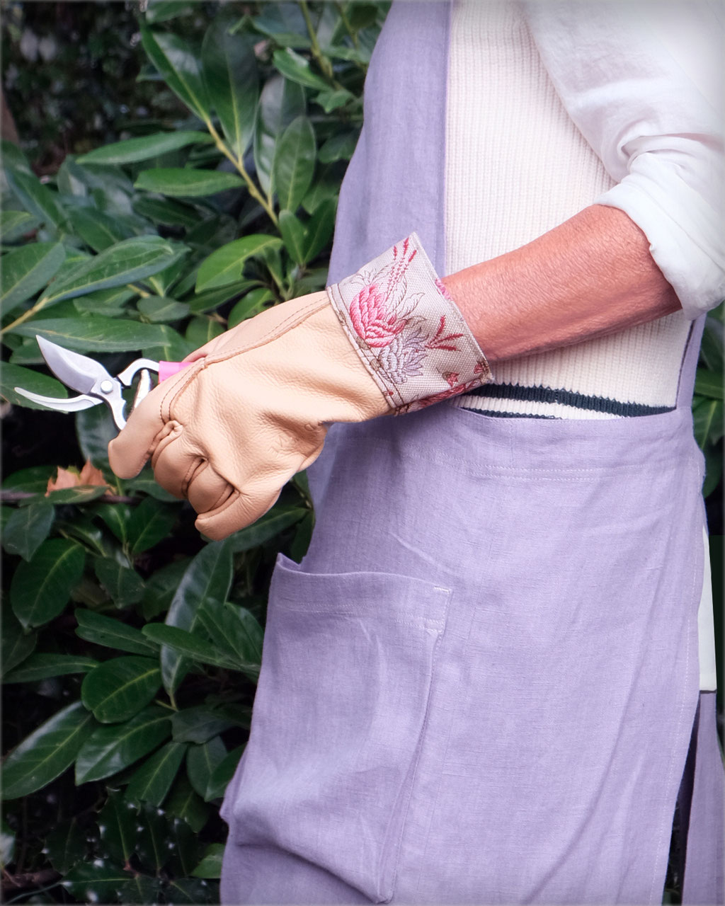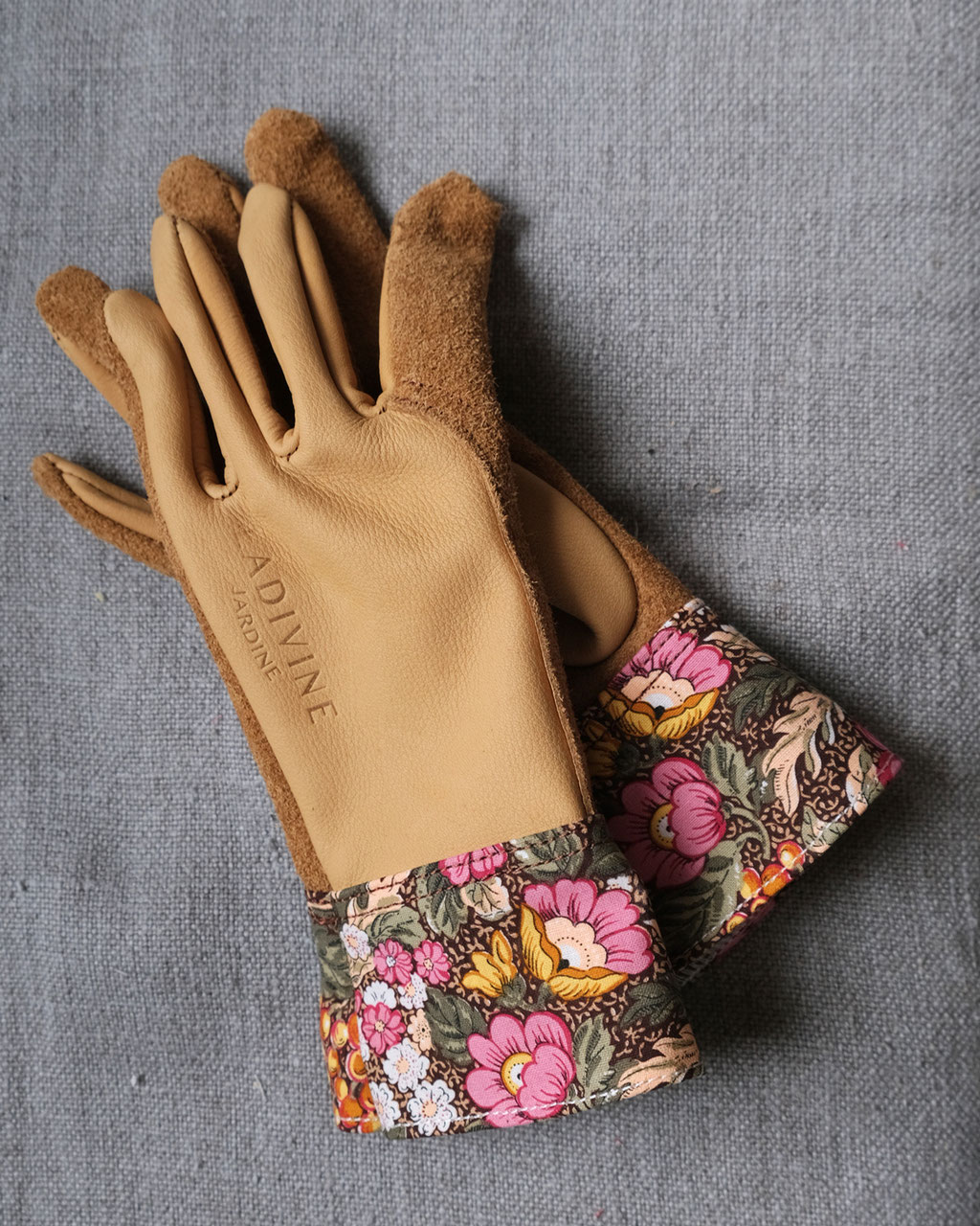 GANTS DE JARDINAGE EN CUIR ET TOILE IMPRIMÉE