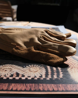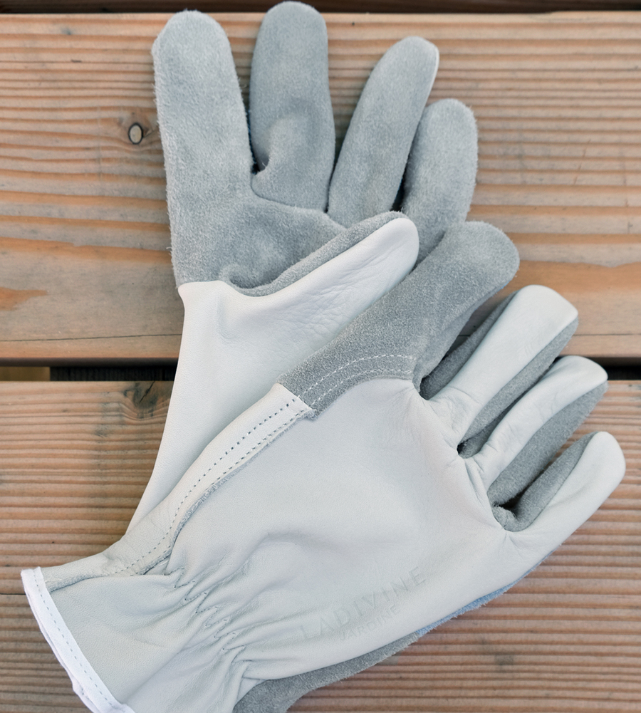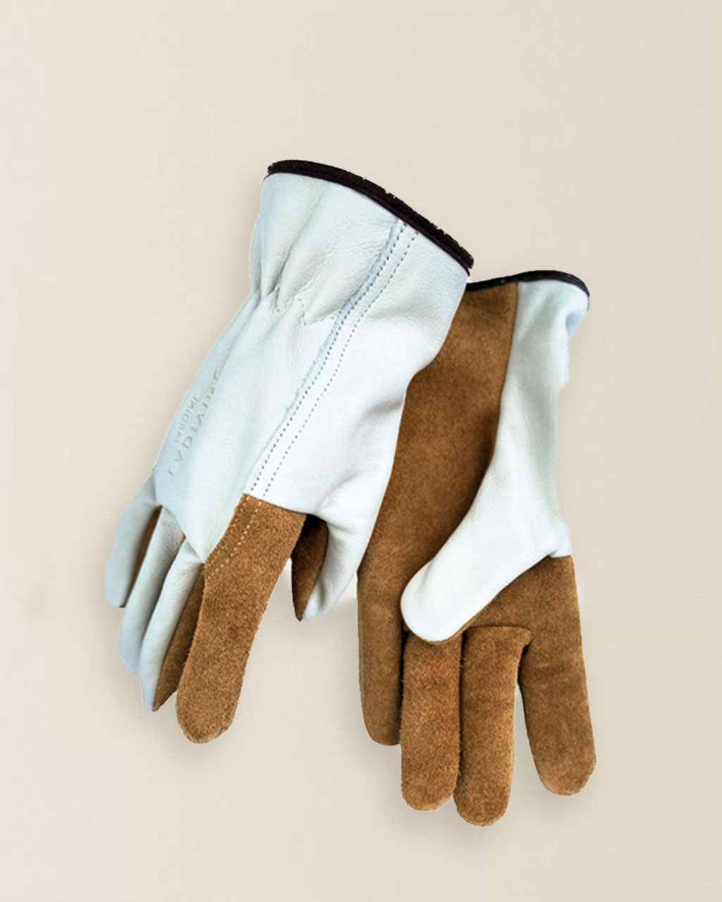 GANTS CUIR BLANC - CROUTE DE CUIR GRISE