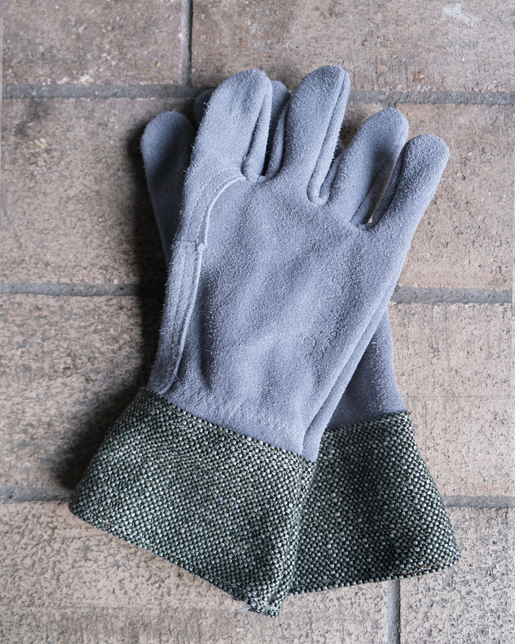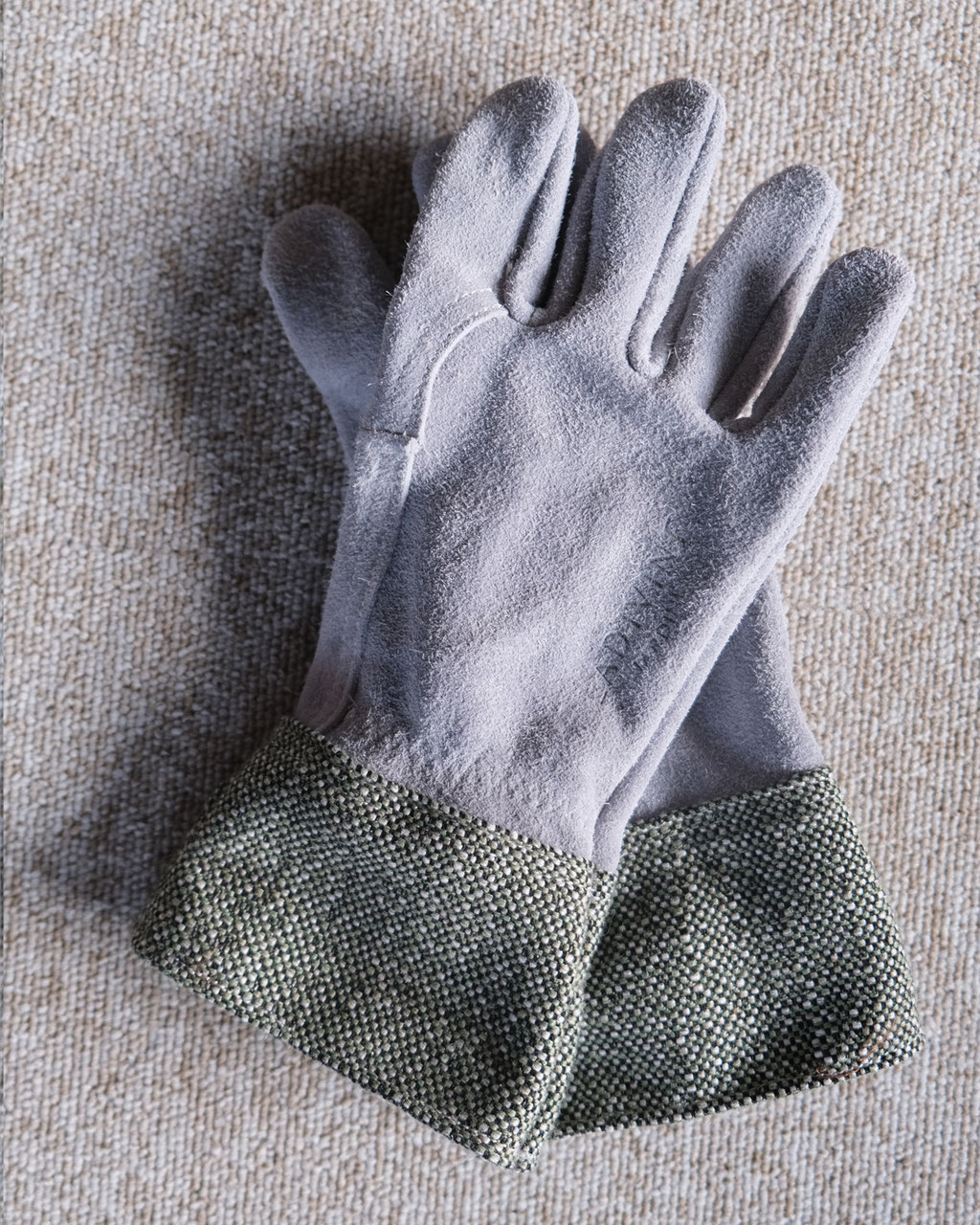 Gants de jardinage avec paume et main en croûte de cuir grisée et manchette toile Sunbrella spécial