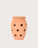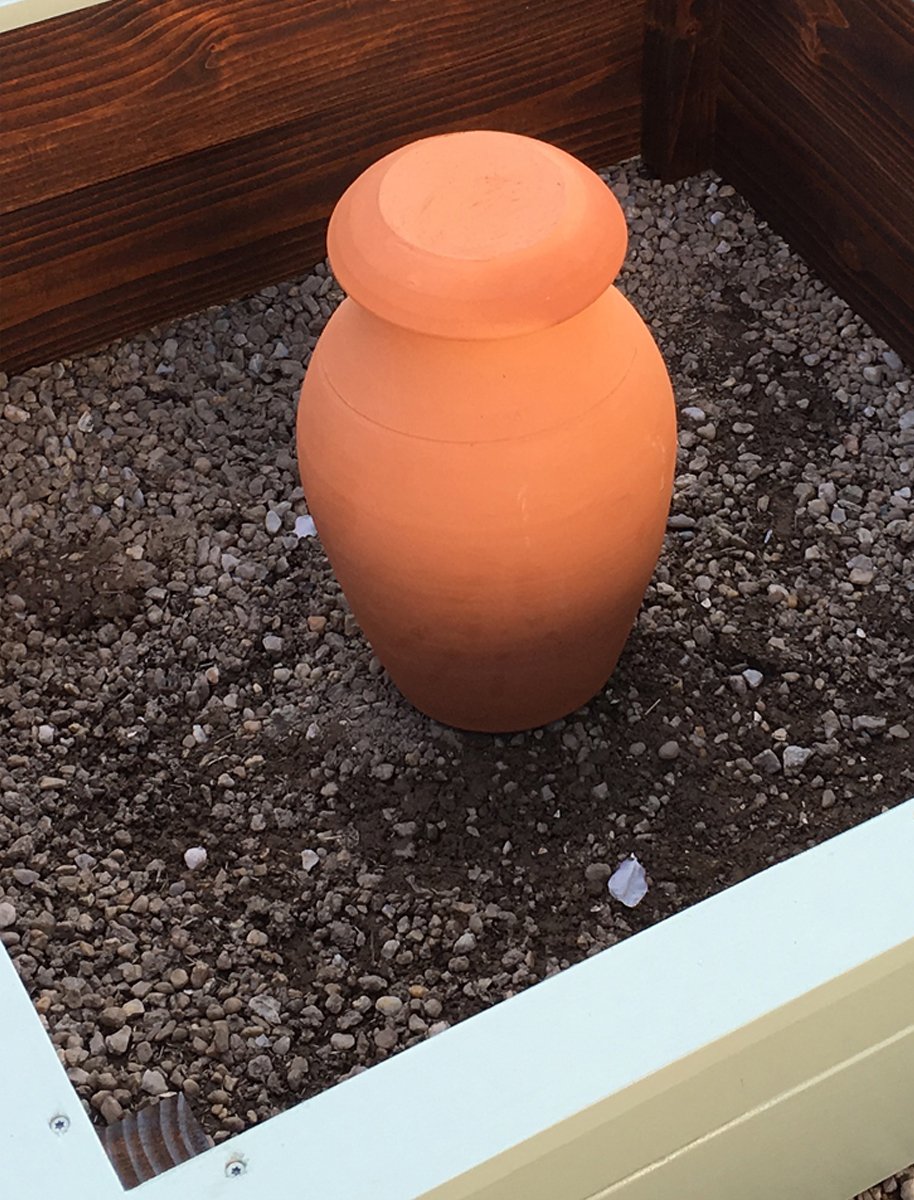 En l'enterrant dans votre terreau, ce diffuseur d'eau en argile permet l'hydratation de votre coin de verdure de manière autonome. Une fois rempli d'eau, il la diffuse lentement pour nourrir les racines de vos plantes à leur rythme. Le couvercle sert à limiter aussi l'évaporation mais aussi à éviter que des petites bêtes s'y installent.