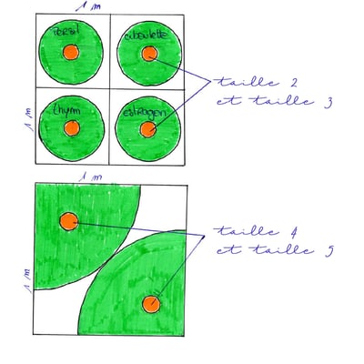 Les plantes gourmandes en eau, type Hydrangeas, nécessitent également de gros contenants. Pour les plantations en carrés potager, les racines des aromates s'orientent toujours vers la zone humide.