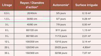 Réalisez des économies d'eau comparé à un arrosage par aspersion en remplissant votre Ollas tous les 3 à 45 jours pour 0,13m² à 10m². Grâce à une porosité optimisée, l'autonomie et les surfaces irriguées sont optimum.