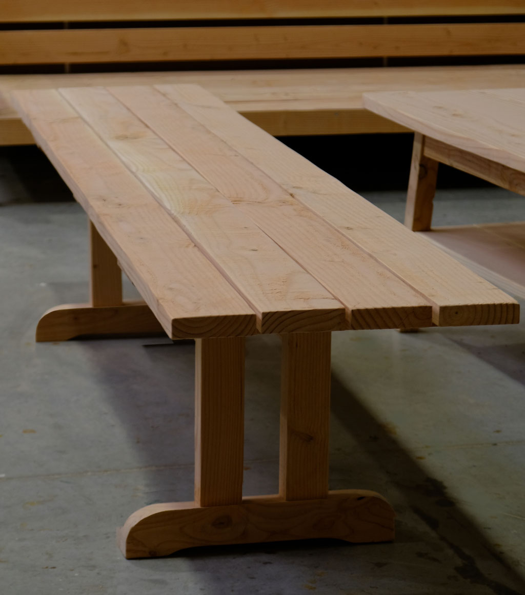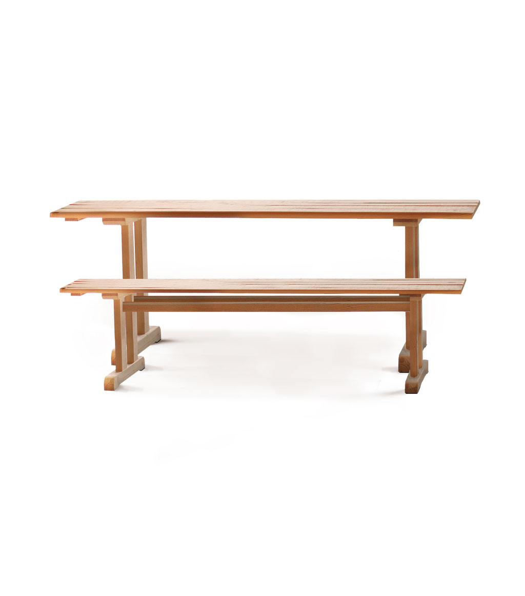 Pour compléter la table du même nom et que vous aimez tant, il nous a semblé tout-à-fait logique de proposer le banc avec. La longueur a été définie pour non pas se glisser entre les pieds de table mais dépasser ceux-ci pour un meilleur emboitement et effet visuel.
