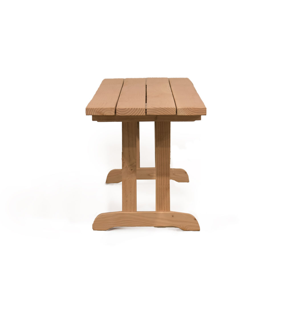 Spécial extérieur. Sélectionné hors coeur et hors aubier. Ponçage toujours léger pour ne pas fragiliser la lame, angles chantournés pour le côté raffiné de la finition.