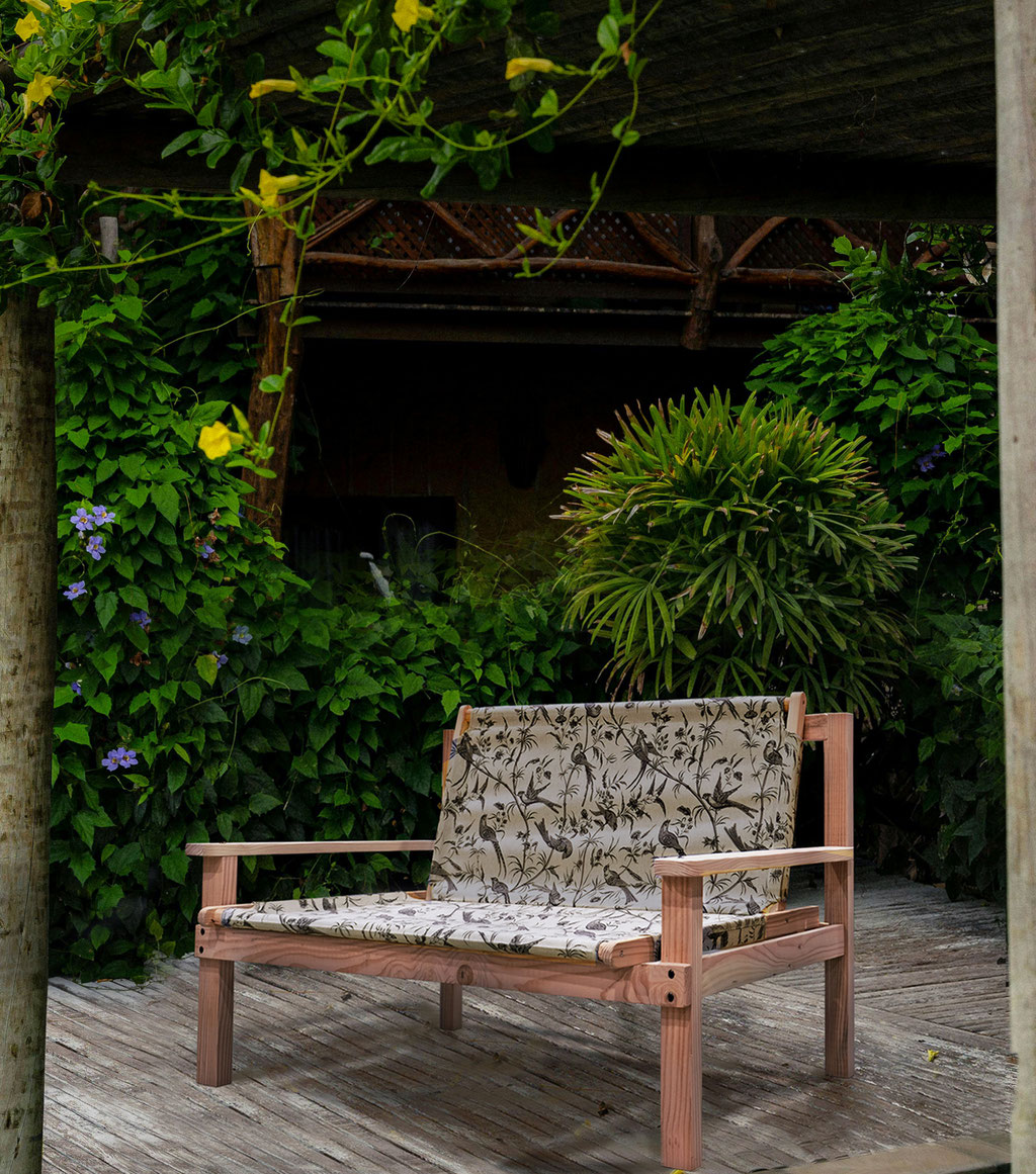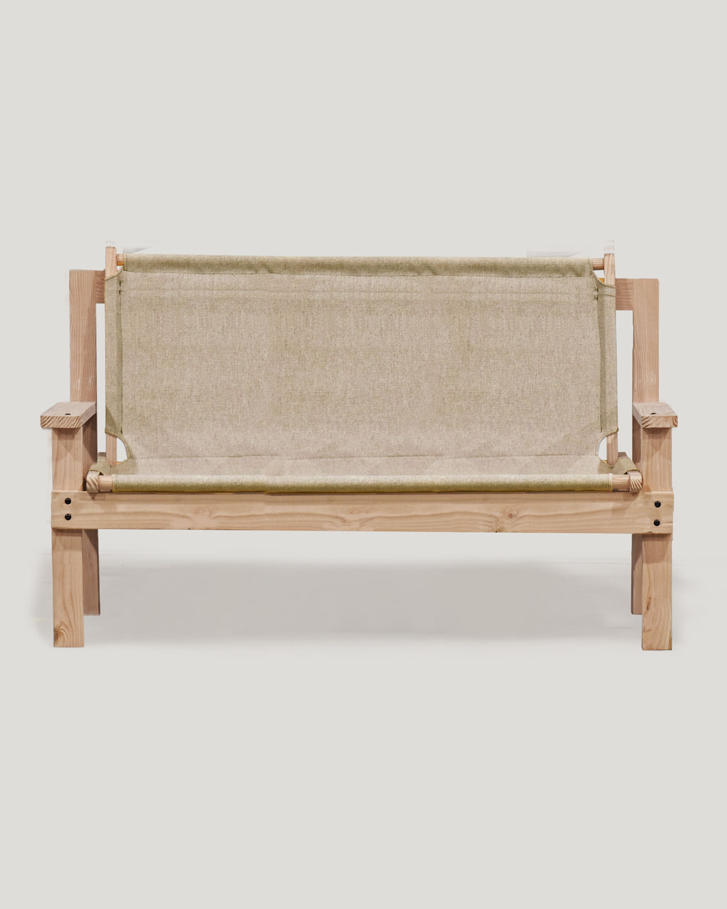 La banquette Campanula, tout en toile vêtue, c'est en premier lieu un confort assuré. Le mix toile et bois donne un esprit bohème et invite à la détente. La banquette reste légère à déplacer à travers le jardin vu sa répartition équilibrée bois/toile..