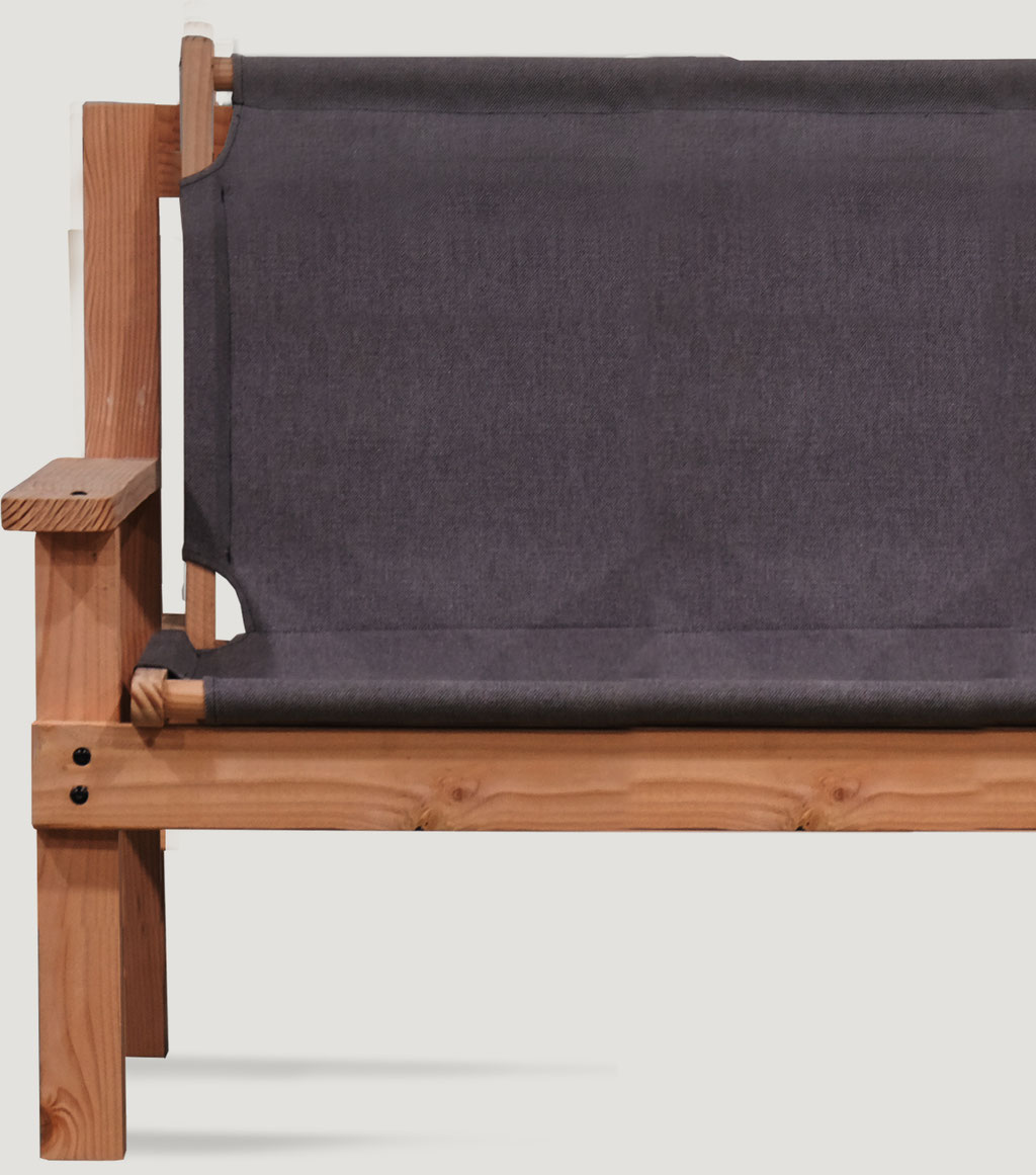 Des meubles pour nous doivent être bien pensés. Dehors, ils se ressemblent, s’assemblent ou se complètent. Mais à chaque fois, ils apportent leur personnalité. Quelquefois, les meubles en bois massif sont lourds à porter. C’est pourquoi, l’idée est venue de remplacer assises et dossier par une solide toile outdoor.