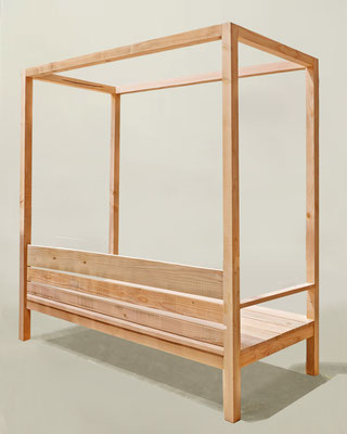 Le Douglas est brut et provient de forêts locales. Au sein d'une école spécialisée, des maîtres artisans apprennent le métier à des jeunes, futurs professionnels du bois. C'est eux qui réalisent tous nos meubles leur permettant de mettre en pratique leur apprentissage.