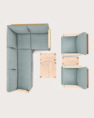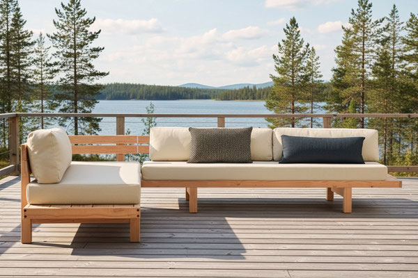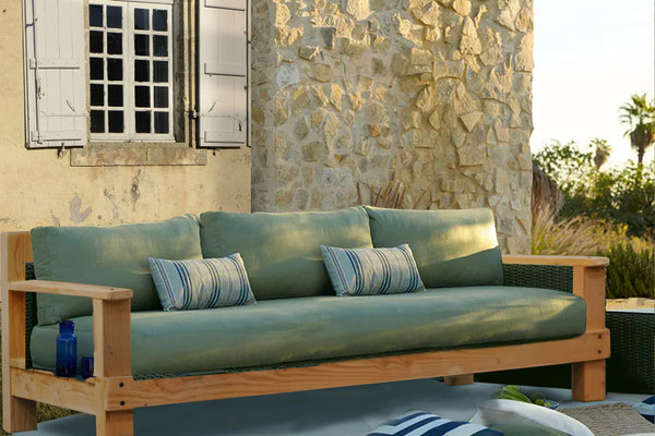 Collections de canapés en bois massif, à vivre en extérieur pour de longues années et fabriqués dans nos contrées au pied du Beaujolais.