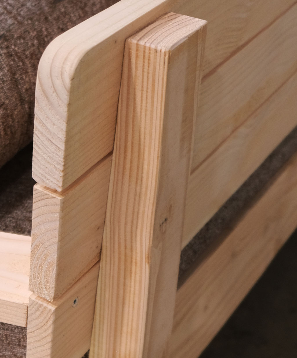 Avec vis et par emboîtement des pièces (technique du tenon-mortaise), avec un minimum de colle, sans clous ni agrafes.