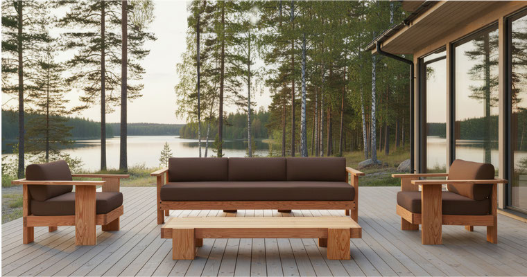 Collections de canapés en bois massif, à vivre en extérieur pour de longues années et fabriqués dans nos contrées au pied du Beaujolais.