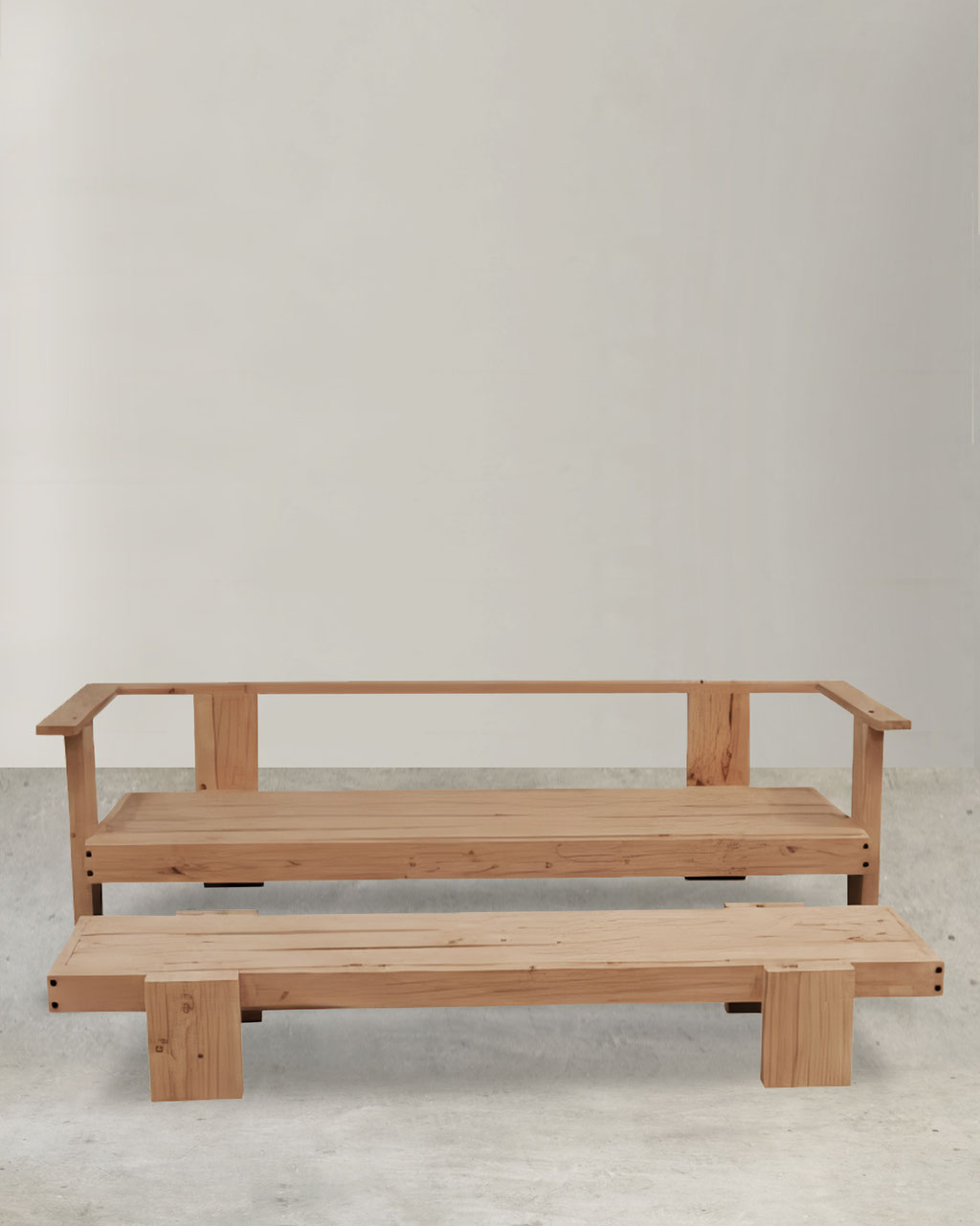 Canapé aux lignes géométriques mais avec les bords d'accoudoirs arrondis pour réunir doucuer et rigueur. Les pieds sont fabriqués avec des lames à section large pour la stabilité du meuble. Les accoudoirs comme toujours chez LDJj, sont bien larges pour poser sa vie. À compléter avec le fauteuil et la table du même nom.