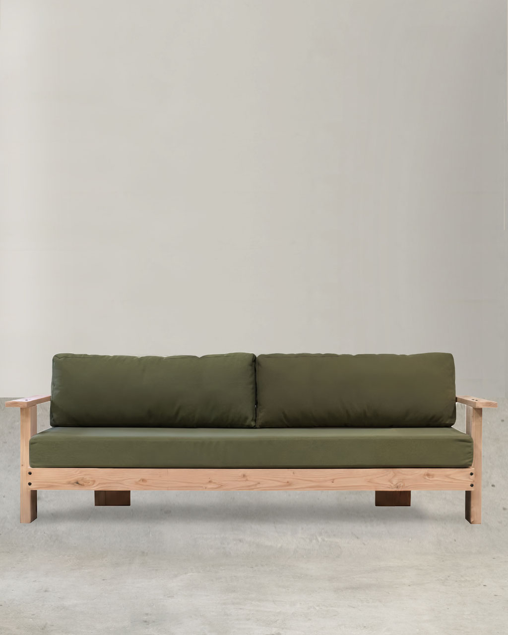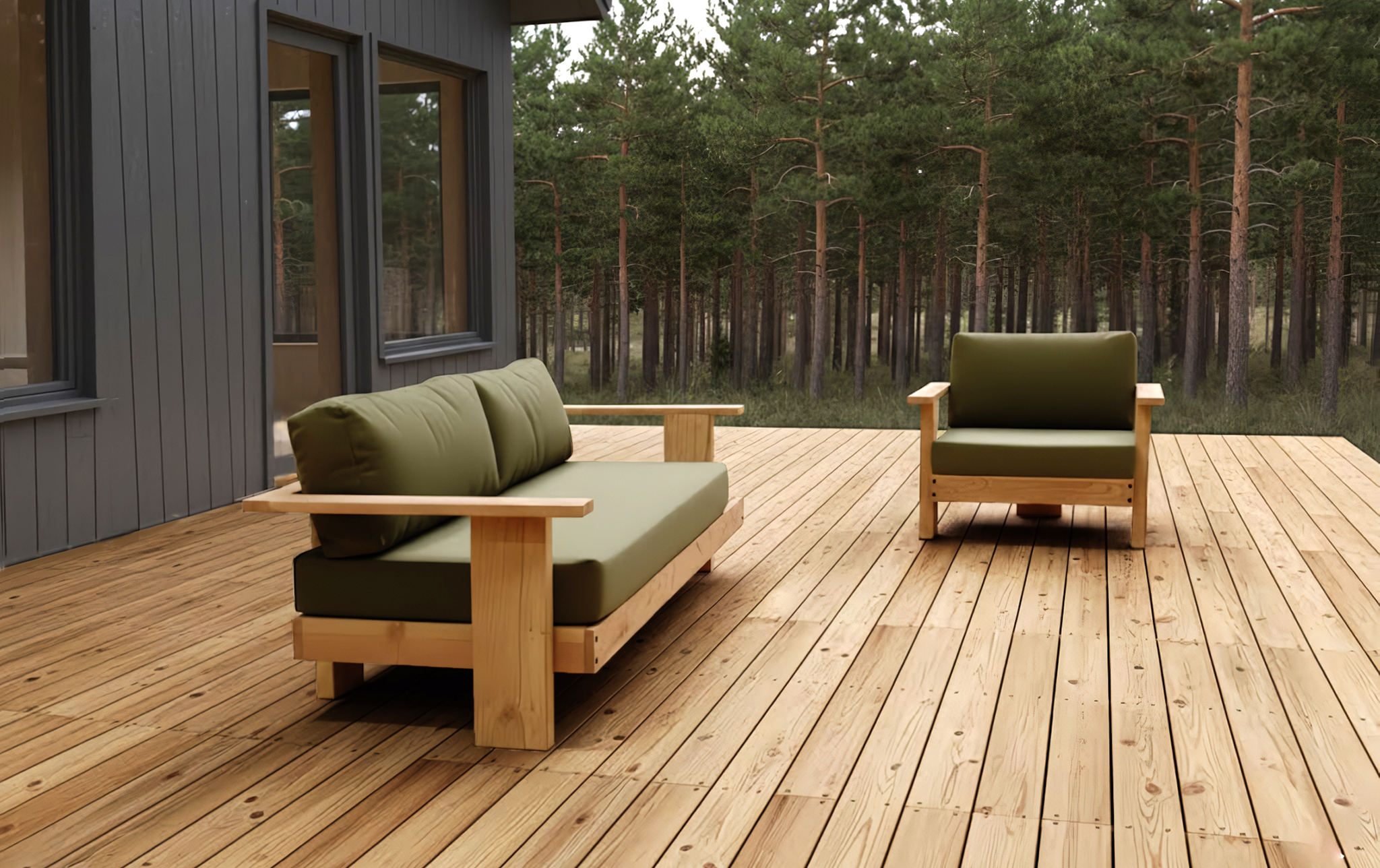 En raison de la physionnomie basse du canapé et du fauteuil, les coussins en toiles Sunbrella sont vendus avec la structure.