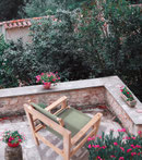 Le fauteuil Sagina avec ses assise et dossier en toile Sunbrella devient plus léger. Facile à porter, il se glisse partout. Les pieds ont juste la bonne section pour rester solide et stable sans alourdir l'ensemble.
