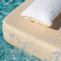 Le fauteuil Sagina avec ses assise et dossier en toile Sunbrella devient plus léger. Facile à porter, il se glisse partout. Les pieds ont juste la bonne section pour rester solide et stable sans alourdir l'ensemble.
