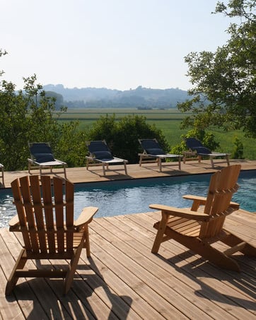 Les espaces entre chaque lames permettront de laisser respirer le bois et éviter qu'il se fende. L'inclinaison du dossier permet de poser sa nuque et d'être au top du confort."