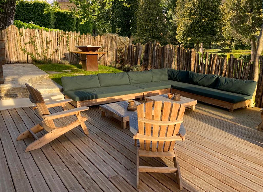 "Utiliser du Mélèze de qualité menuiserie (supérieure) est une garantie de durabilité. Il s'associe aux techniques de montage utilisées pour garantir une très bonne solidité aux meubles destinés à vivre dehors. Par exemple, chaque pièce du fauteuil est chanfreinée pour résister aux pluies.