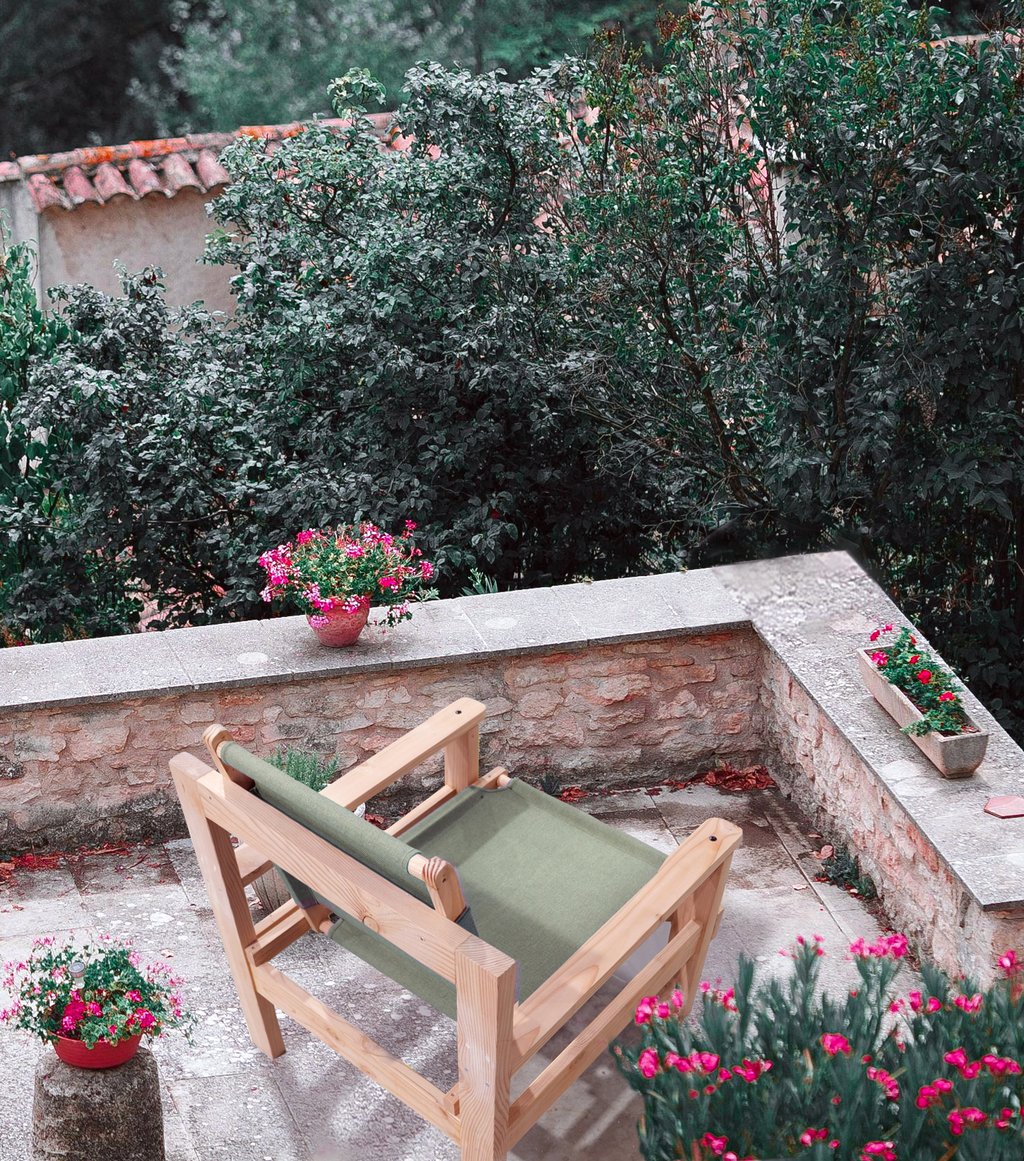 Le fauteuil Campanula, tout en toile vêtu, apporte un confort incroyable. Mix toile et bois pour un esprit bohème, une invitation à la détente, une légèreté qui le rend facile à transporter à travers le jardin.