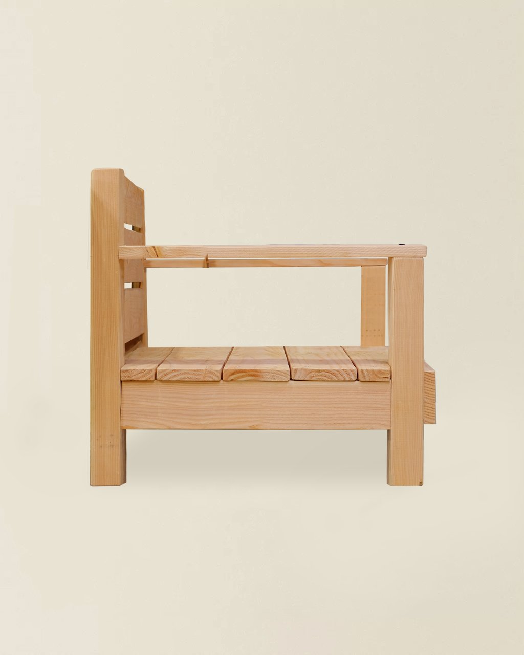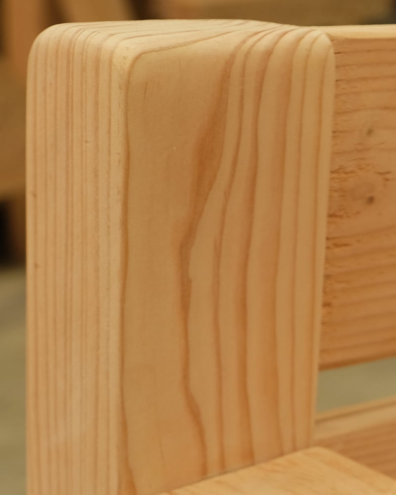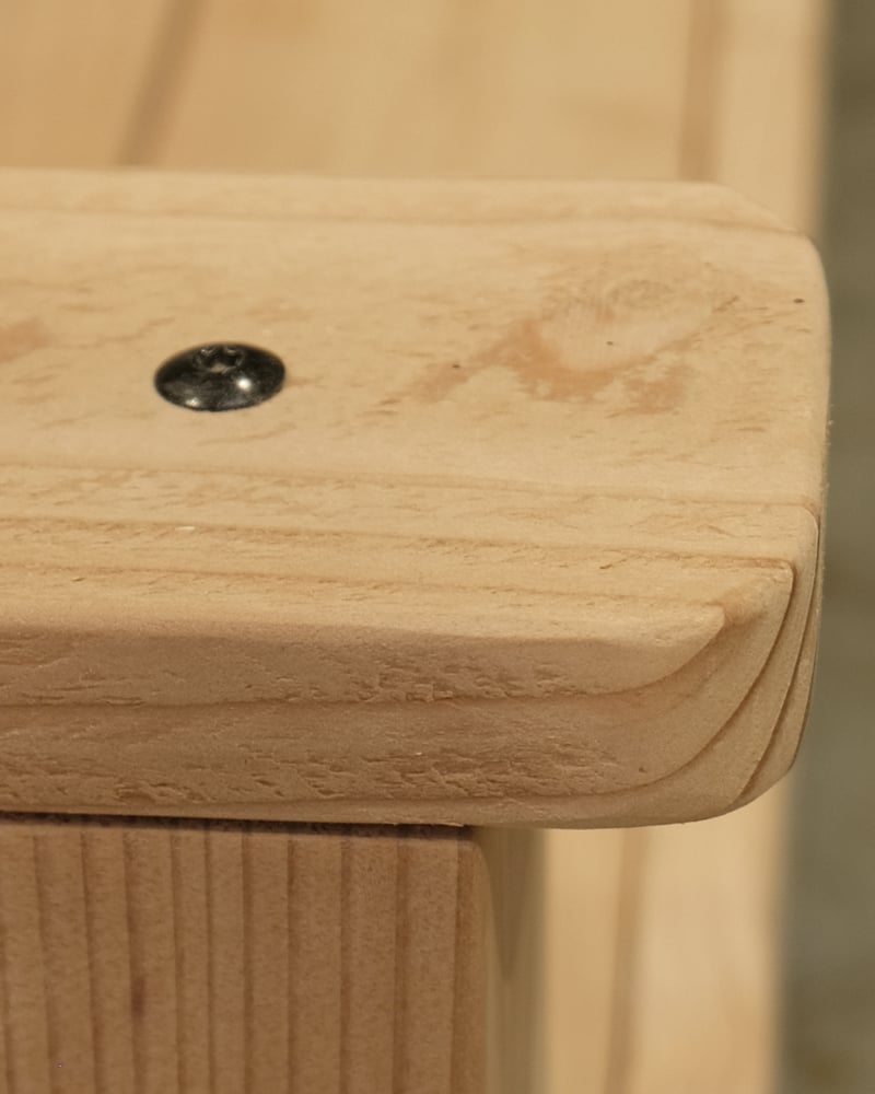 Spécial extérieur. Sélectionné hors coeur et hors aubier. Ponçage toujours léger pour ne pas fragiliser la lame, angles chantournés pour le côté raffiné de la finition.