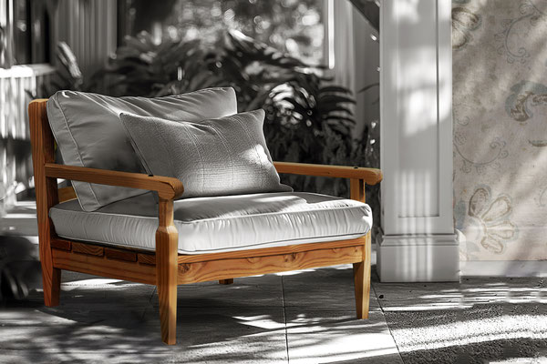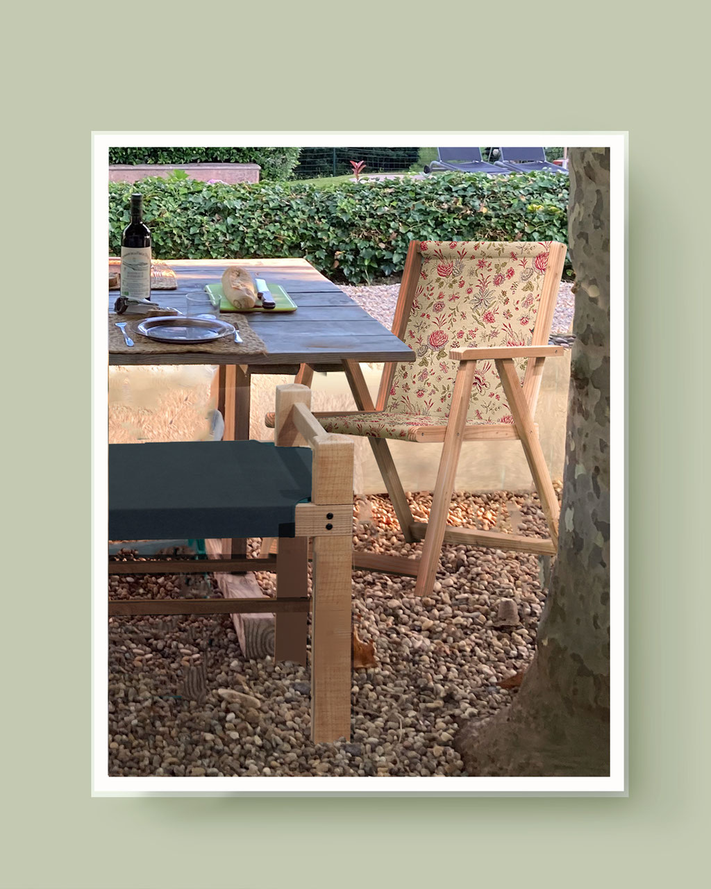 Ces fauteuils ont tous leur petit charme. Le bois douglas ou mélèze leur vont bien. Les assises sont en bois massif ou en toiles Sunbrella.