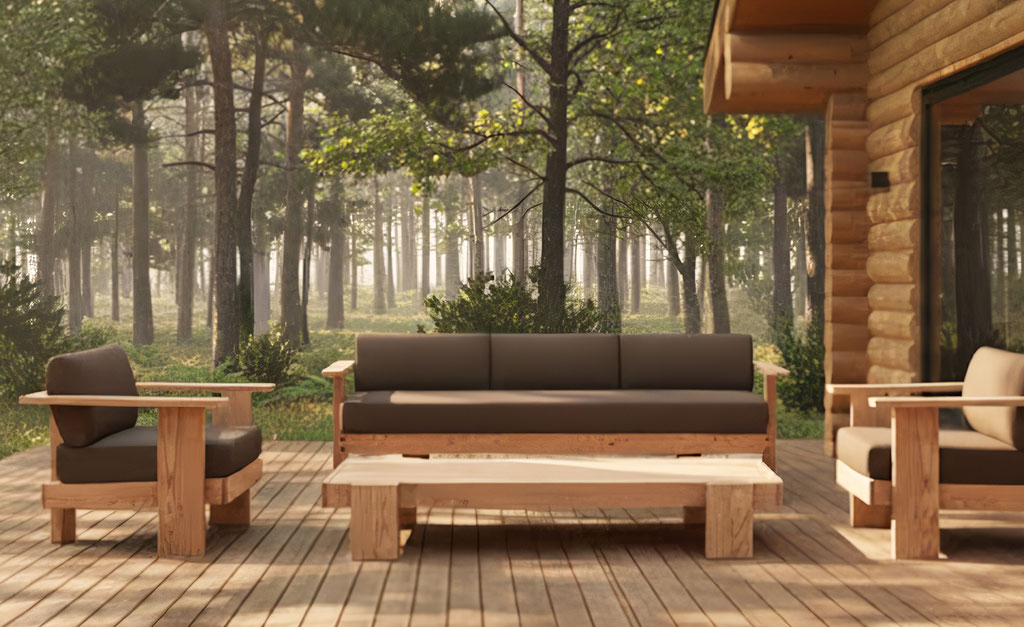 Des meubles simples, solides, bruts, résistants aux intempéries et aux lignes strictes.