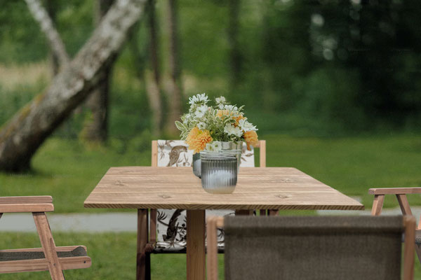 Une table dehors doit être costaude avant tout. Pour pouvoir rester toute l'année exposée, quelque soit le climat et sans craindre de fortes intempéries. Coup de vent, pluie diluvienne, soleil asséchant, écarts de température, elles doivent supporter tout., Quelques règles doivent être respectées pour prétendre garantir la longévité: espaces stratégiques entre les lames pour laisser le bois vivre, assemblages au coeur du bois et à l'ancienne, choix des essences naturellement résistantes par leur densité et caractéristiques.