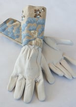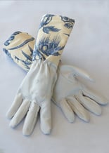 Gants de jardinage avec grande manchette de 14 cm de haut en lin imprimée. Seul un gant long assurera la protection des avant-bras des roses épineuses ou toutes sorte de ronces.