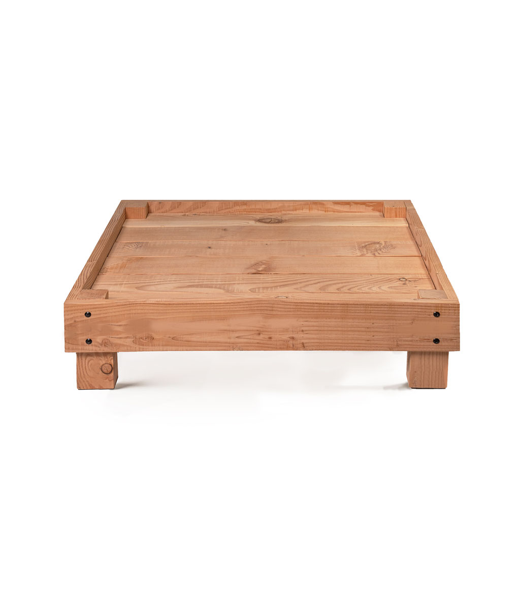 Issu des forêts du Haut-Beaujolais. Bois brut, séché et non traité chimiquement (par autoclave ou vernis).