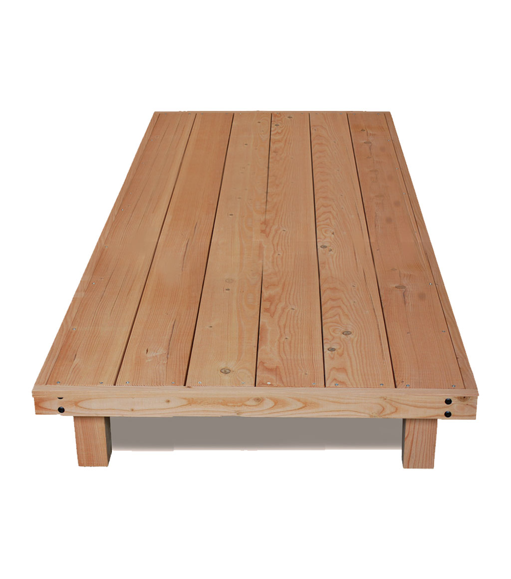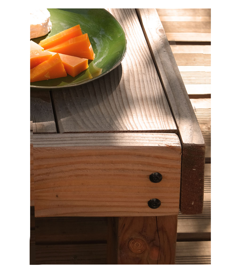 Spécial extérieur. Sélectionné hors coeur et hors aubier. Ponçage toujours léger pour ne pas fragiliser la lame, angles chantournés pour le côté raffiné de la finition.
