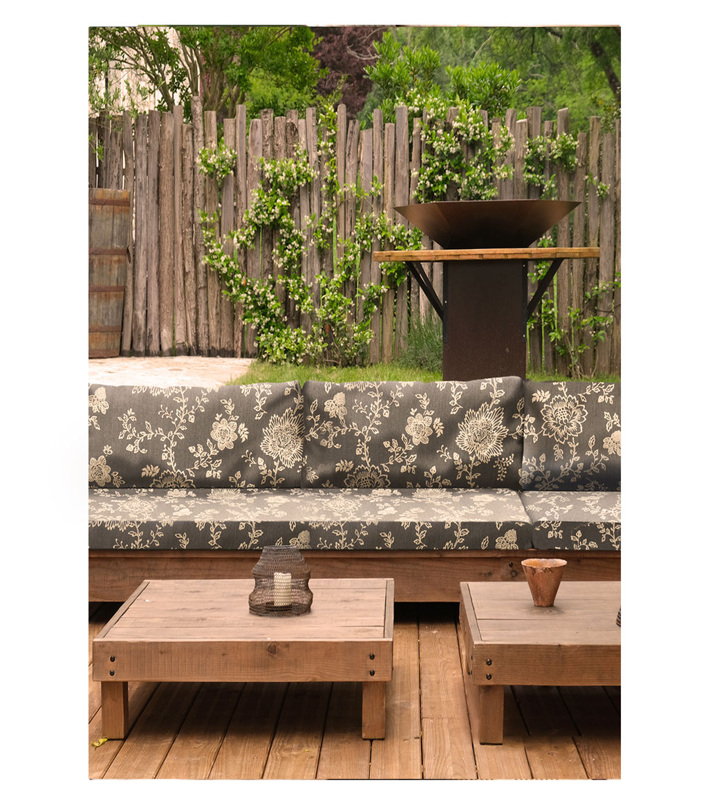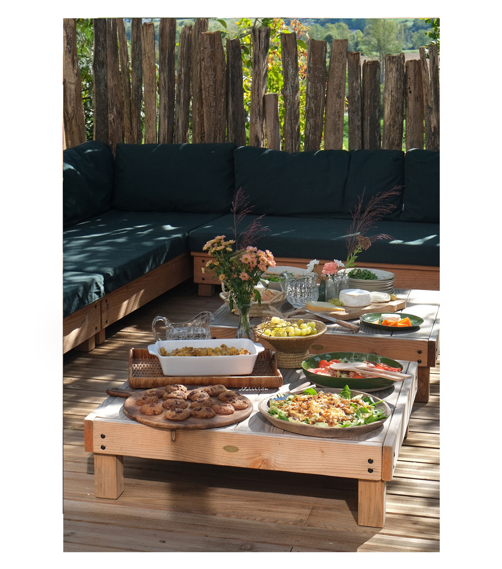 Des dimensions différentes transforment la table selon vos besoins : en carré, elle peut servir de coin du U ou du L pour créer des espaces de vie bohèmes et relier les daybeds ou banquettes entre eux.