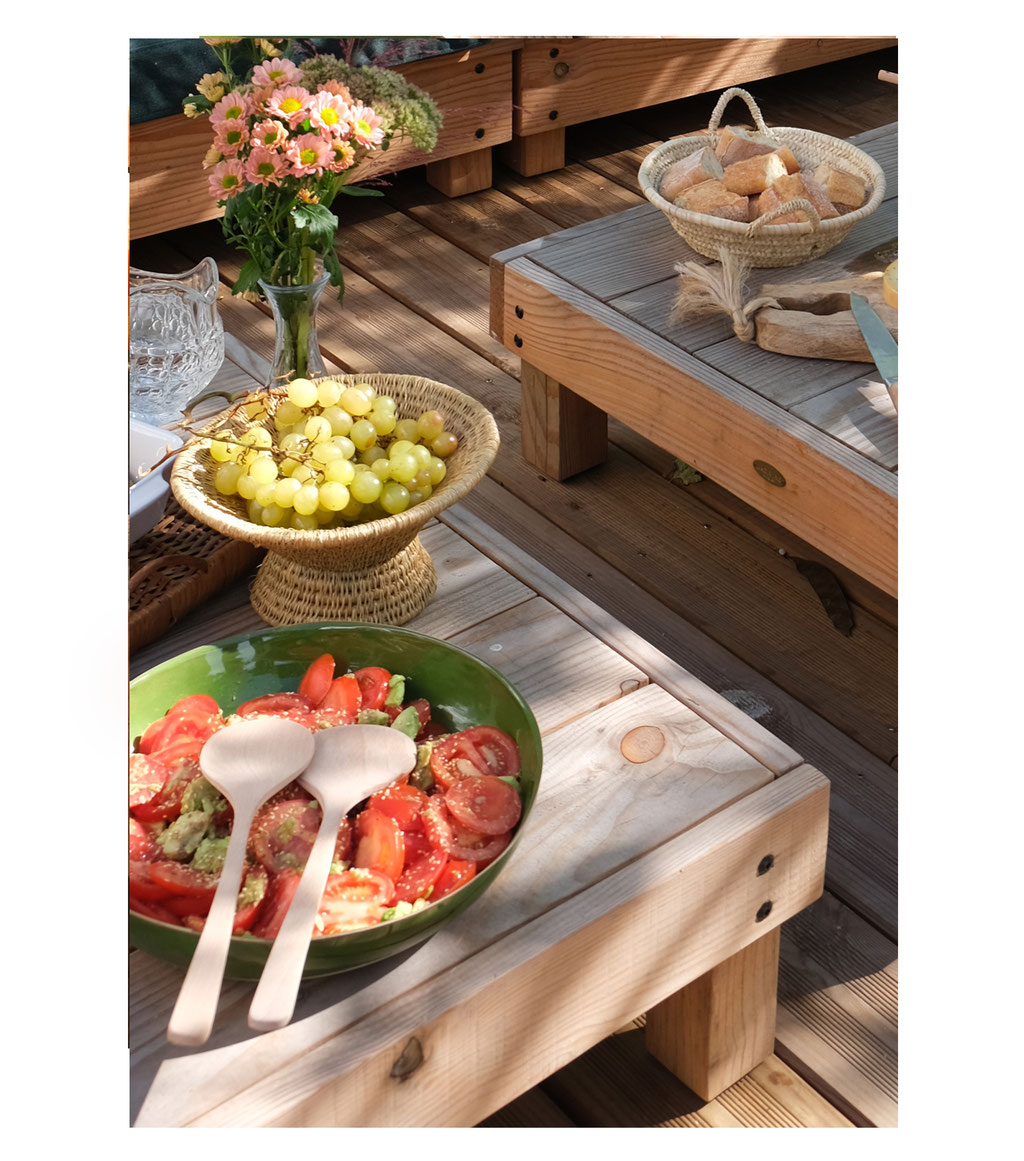 Pleine, on l'utilise en table basse ou dans la grande longueur, en daybed, creuse elle est parfaite pour y caler l'apéro ou ses semis.