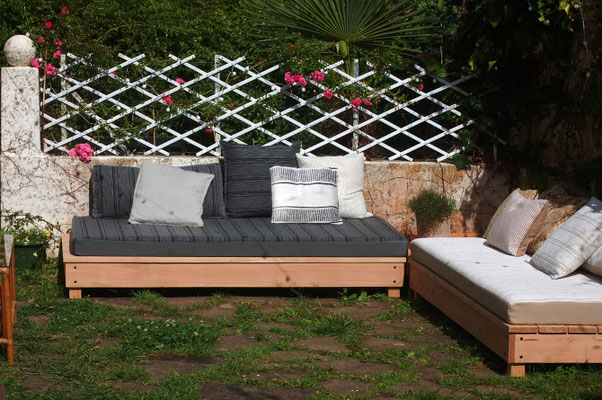 Si vous souhaitez les matelas outdoor pour votre canapé, rendez-vous sur l'onglet textile pour choisir le matelas assorti dans la couleur de votre choix .