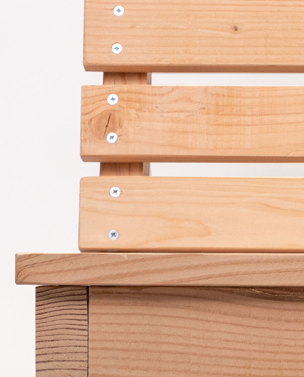 Spécial extérieur. Sélectionné hors coeur et hors aubier. Ponçage toujours léger pour ne pas fragiliser la lame, angles chantournés pour le côté raffiné de la finition.