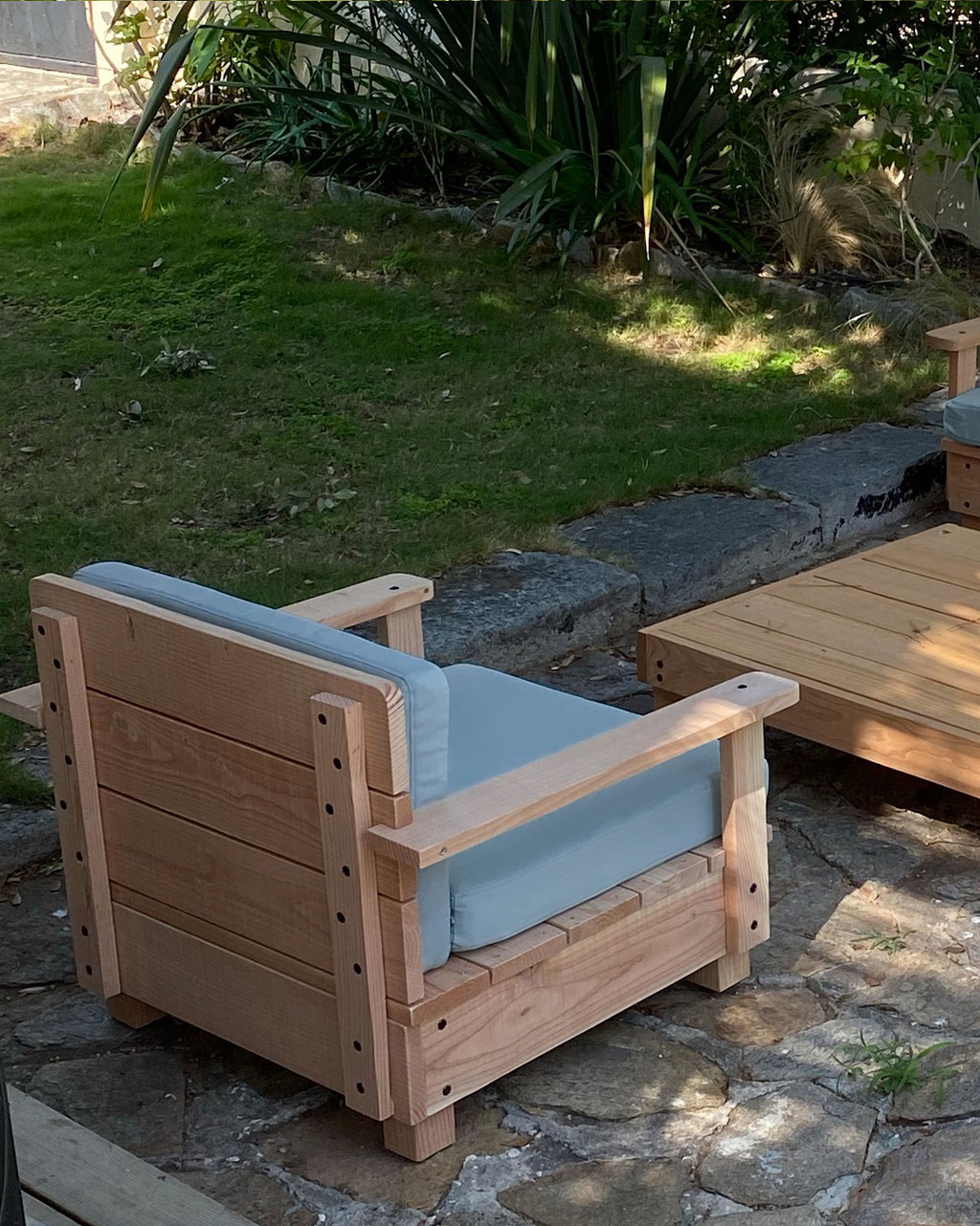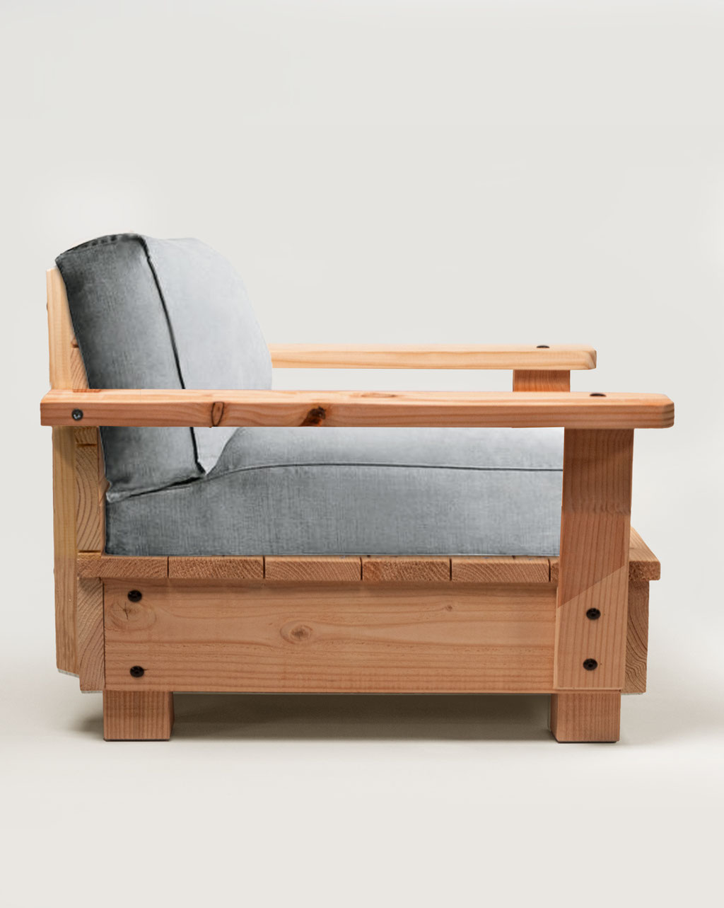 Fauteuil à assortir avec le canapé Lilas. Le modèle XL a une largeur de 90x85 cm et une hauteur de 35 cm pour s'assortir au canapé Grandlilas. Composé de bois brut qui peut être peint ou laissé vieillir naturellement, ce fauteuil a un volume qui invite à la détente avec son assise confortable, ses accoudoirs élargis et un look un peu Hampton.